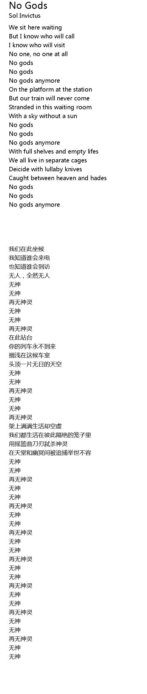 | No gods anymore |