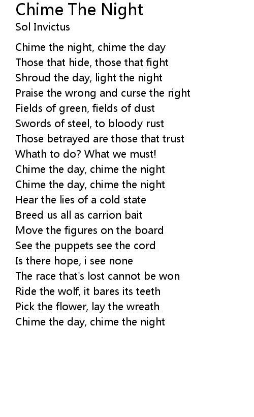 Chime the night, chime the day |