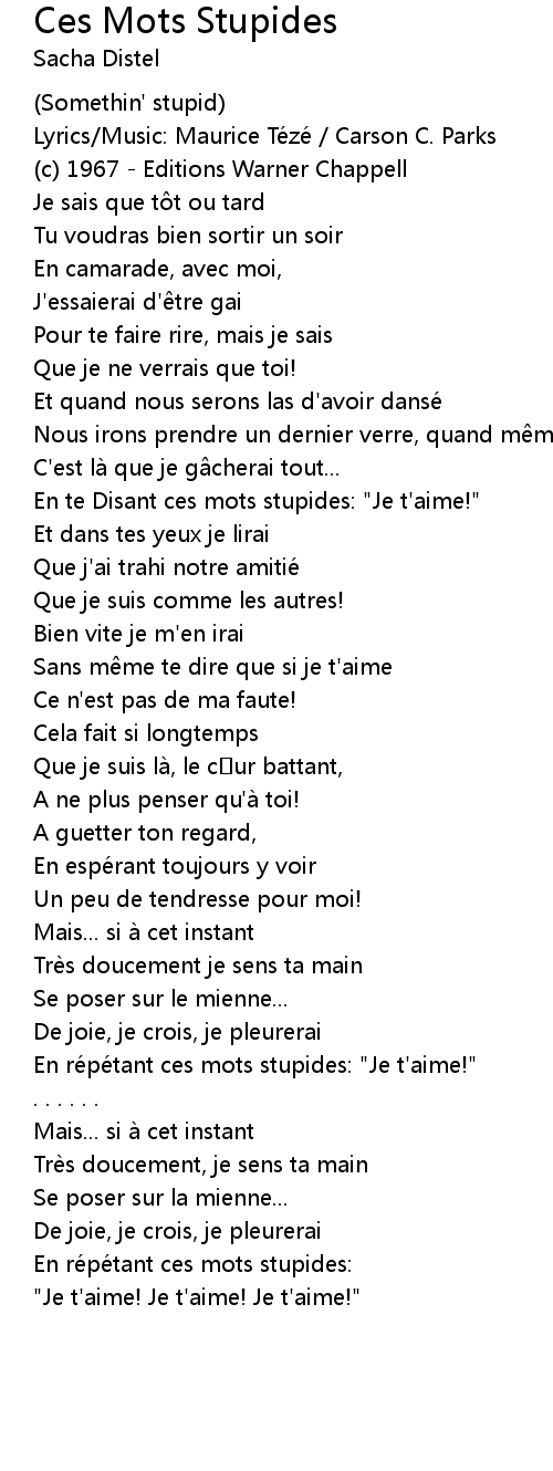 | En te Disant ces mots stupides: " Je t' aime!" | |