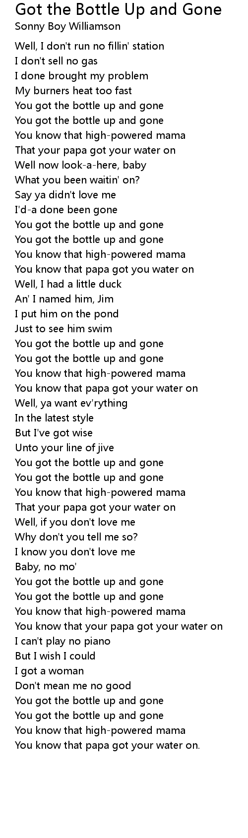 You got the bottle up and gone |