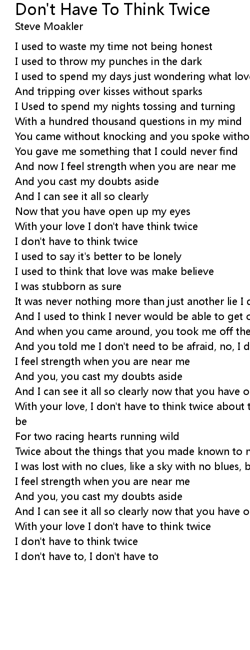 With your love, I don't have to think twice about the way that it's supposed to be |