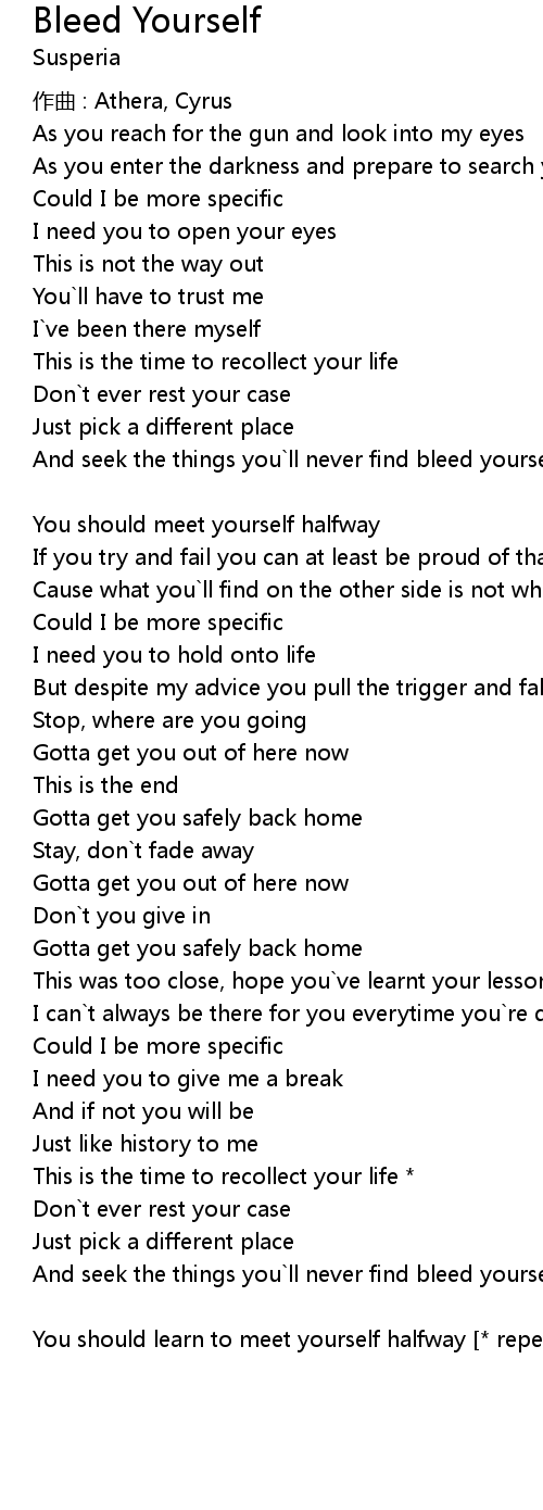 | And seek the things you ll never find bleed yourself, it just doesn t make sense | |