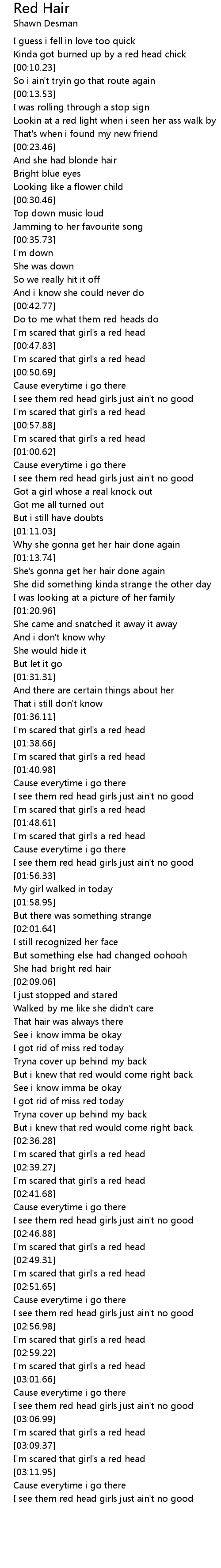I'm scared that girl's a red head |