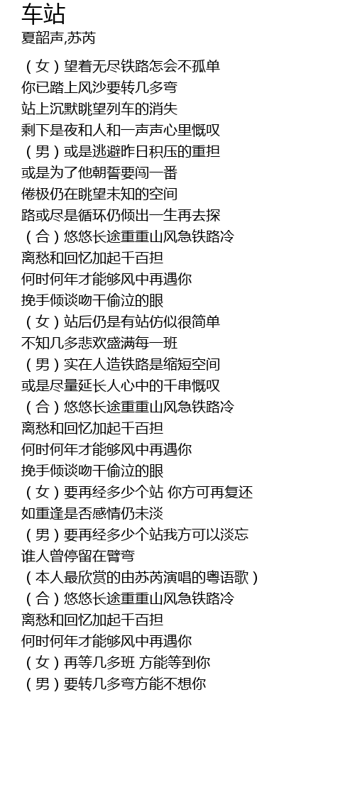 车站 che zhan Lyrics