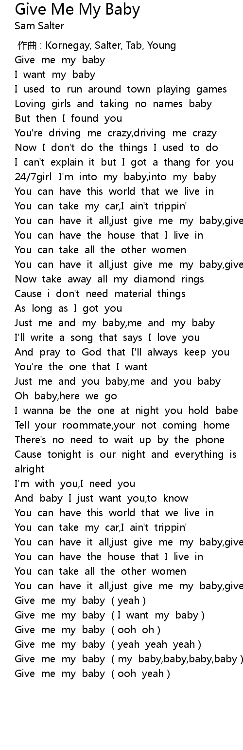 | [03:43.776] | Give me my baby my baby, baby, baby, baby x2 |