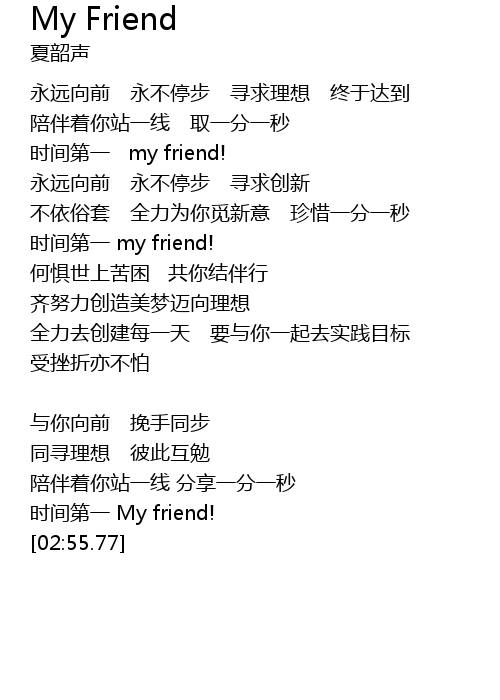 | [02:48.82] | 时间第一 My friend! |