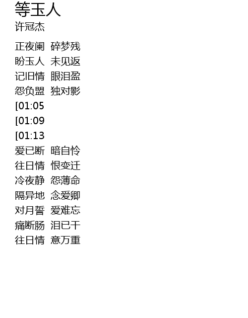 | [02:00][01:09][00:40] | 对景孤单悲泣暗怨恨 |