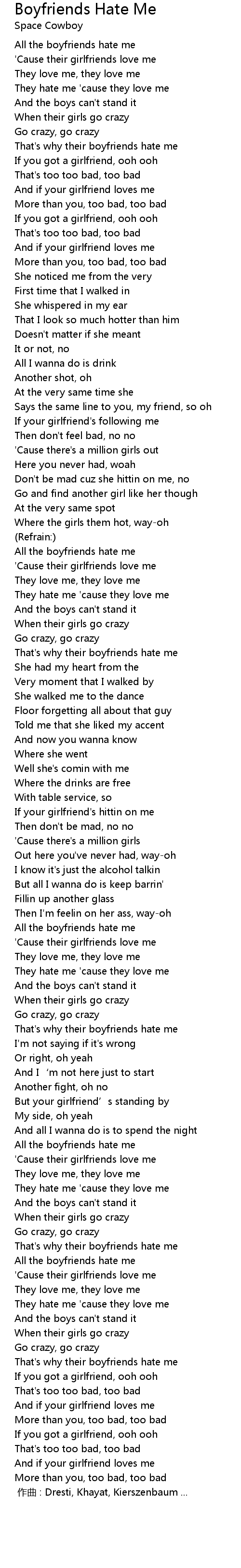 | Song | Boyfriends Hate Me |