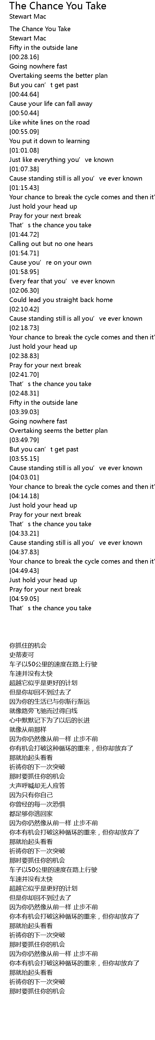 | [04:42.51] | Your chance to break the cycle comes and then it' s gone |