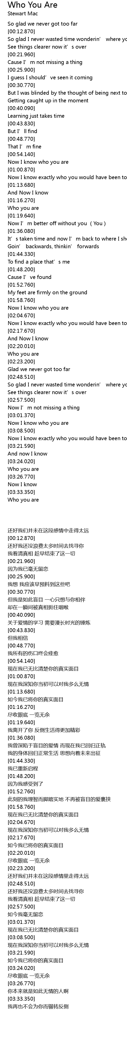 | [03:34.250] | Who you are |