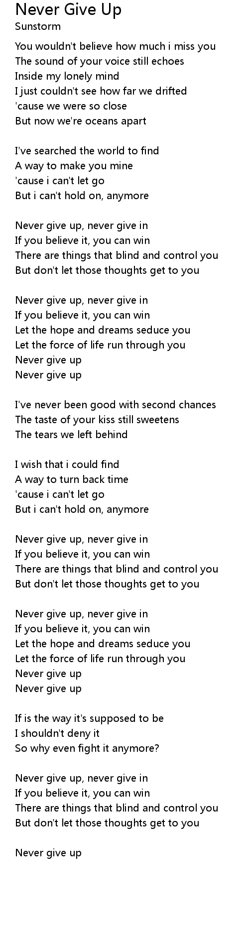 Never give up, never give in |