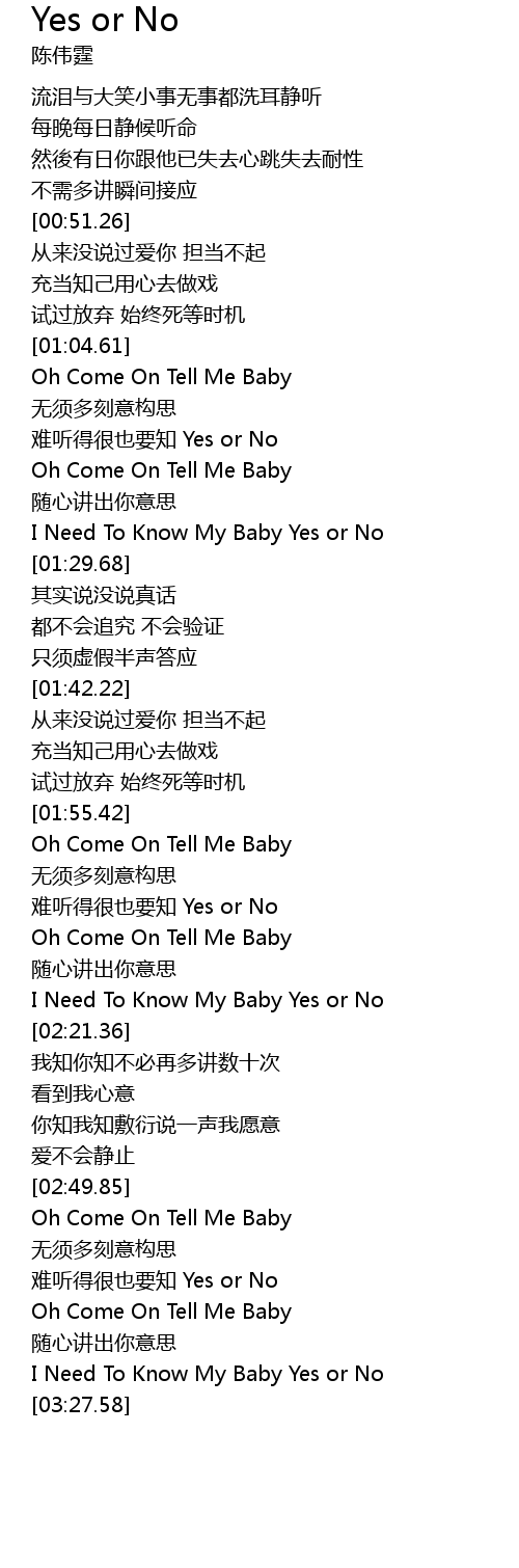 | [03:20.52] | I Need To Know My Baby Yes or No |