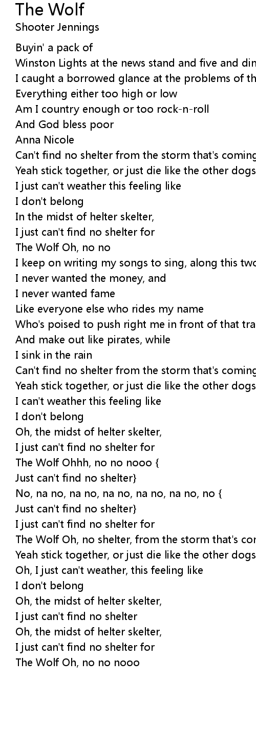 The Wolf Oh, no shelter, from the storm that's coming on |