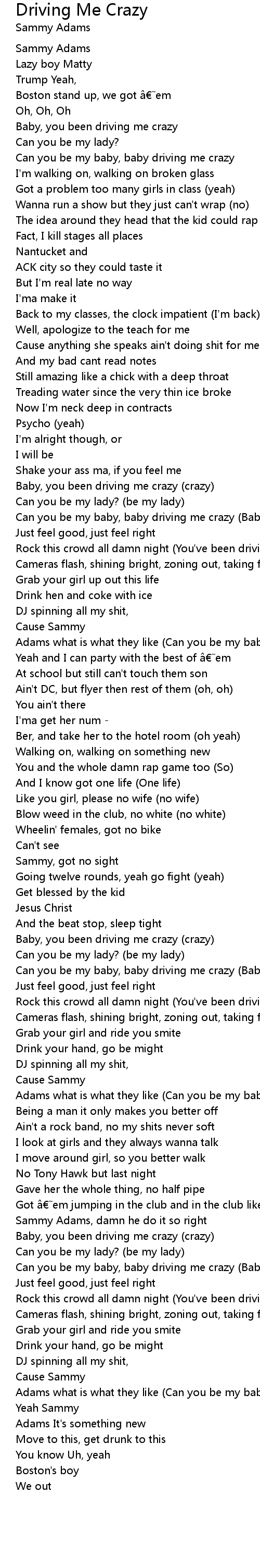 | Rock this crowd all damn night You' ve been driving me crazy | |