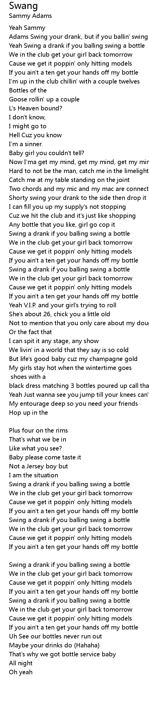 Adams Swing your drank, but if you ballin' swing that bottle |