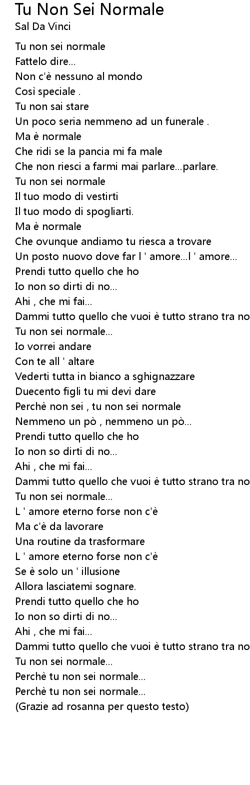 | Song | Tu Non Sei Normale |
