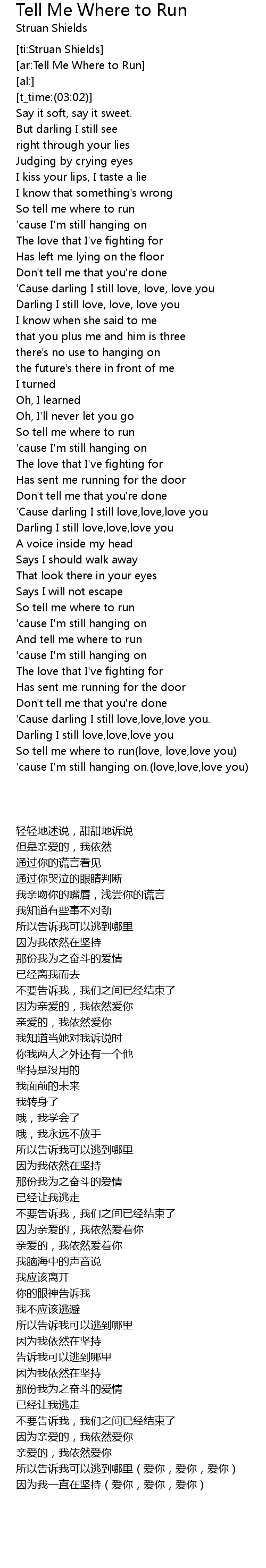 So tell me where to run(love, love,love you) |