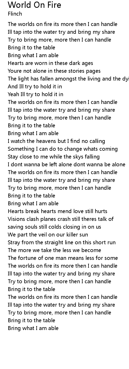 The worlds on fire its more then I can handle |
