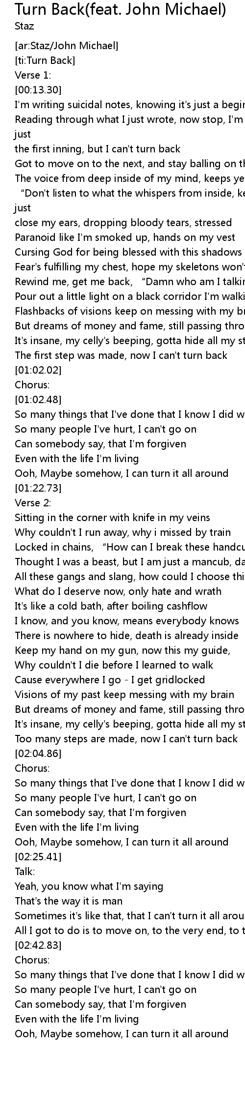 | [00:47.19] | Rewind me, get me back, “Damn who am I talking to?” |