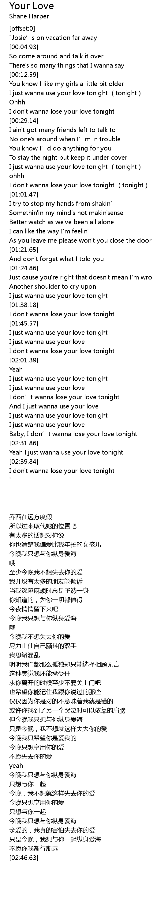 | [02:33.52] | Yeah I just wanna use your love tonight |