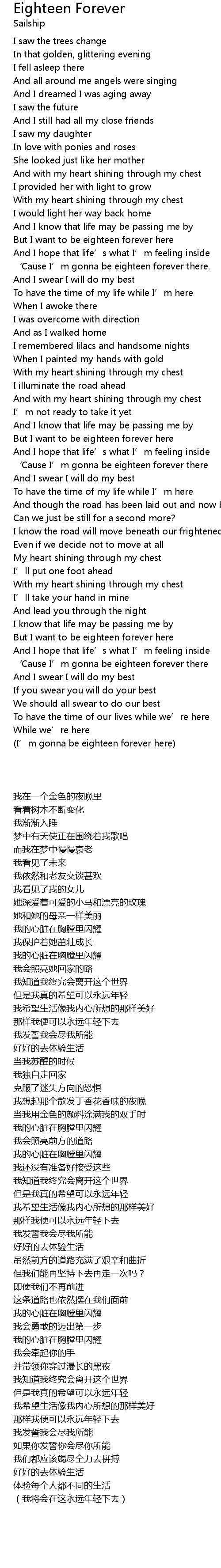 | [04:39.79] | ' Cause I' m gonna be eighteen forever there |