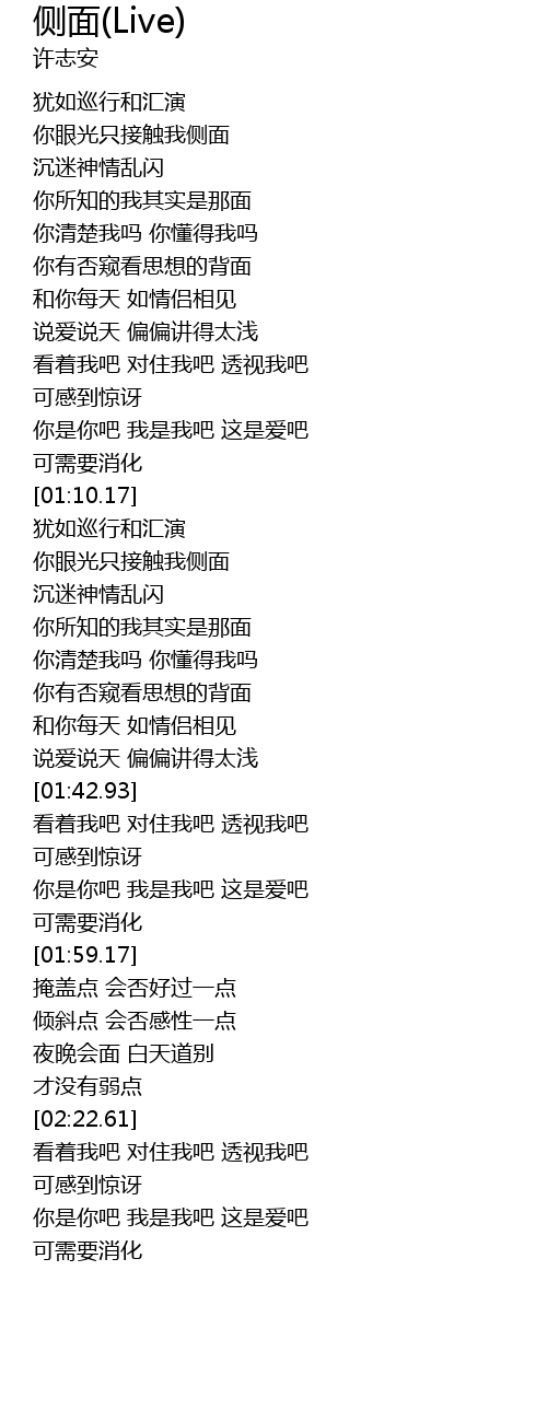 | [01:15.30] | 你眼光只接触我侧面 |