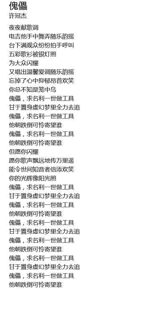 | [00:48.99] | 傀儡,求名利一世做工具 |