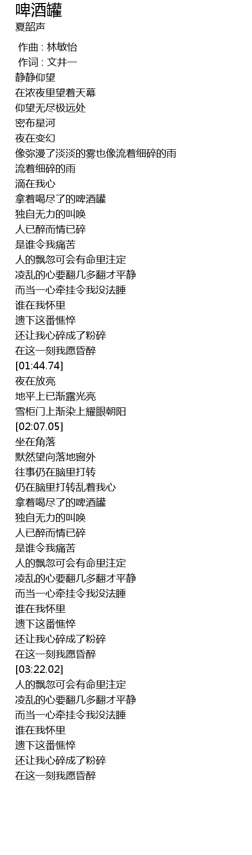 | [00:43.97] | 拿着喝尽了的啤酒罐 |