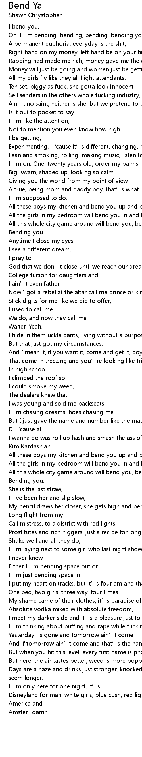 | Oh, I' m bending, bending, bending, bending you, oh, yeah. | |