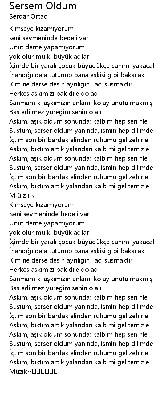 | Song | Sersem Oldum |