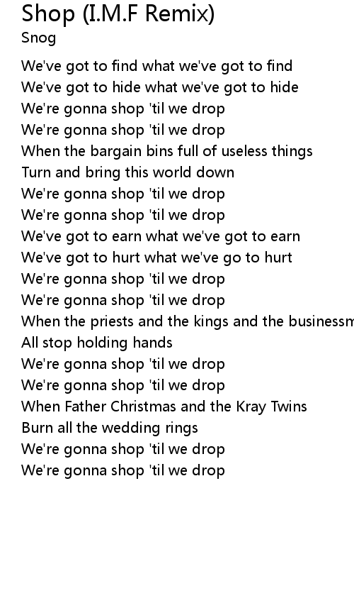 We're gonna shop 'til we drop |