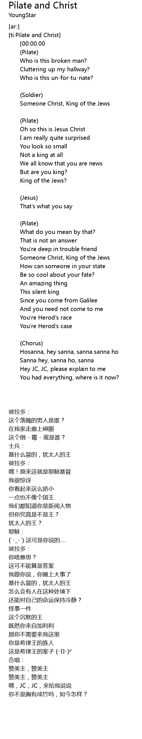 | [02:18.26] | Hey JC, JC, please explain to me |