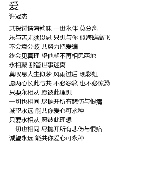 | [01:35.15] | cheng wang yong yuan neng gong ni ai xin ke yong zhong |