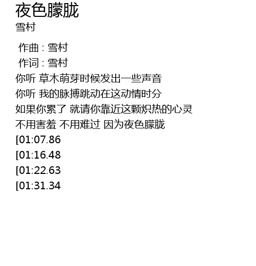 | [00:59.99] | 不用害羞 不用难过 因为夜色朦胧 |