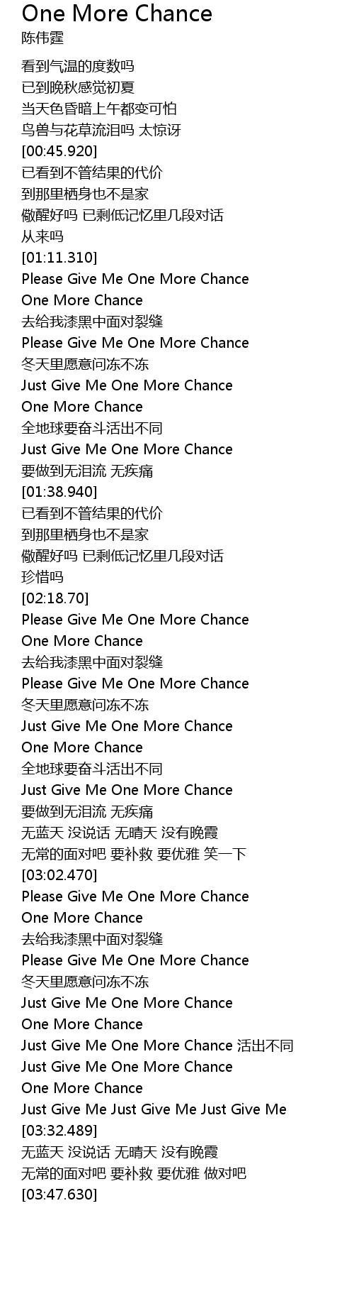 | [03:23.100] | Just Give Me One More Chance huo chu bu tong |