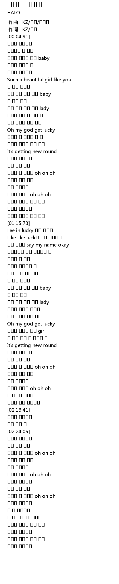| [01:17.98] | Lee in lucky 통통 튀어라 |