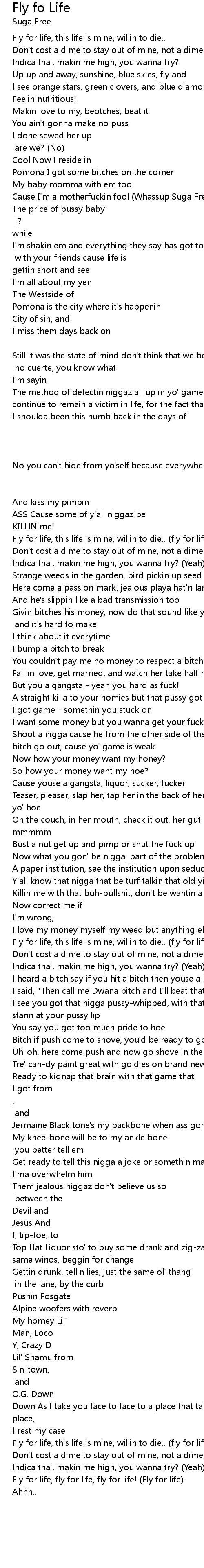 Cause I'm a motherfuckin fool (Whassup Suga Free?) |