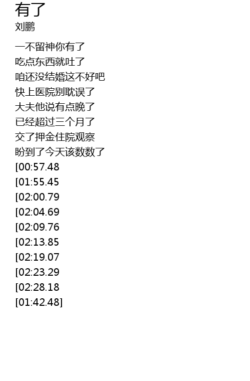 | [00:41.57] | yǐ jīng chāo guò sān ge yuè le |