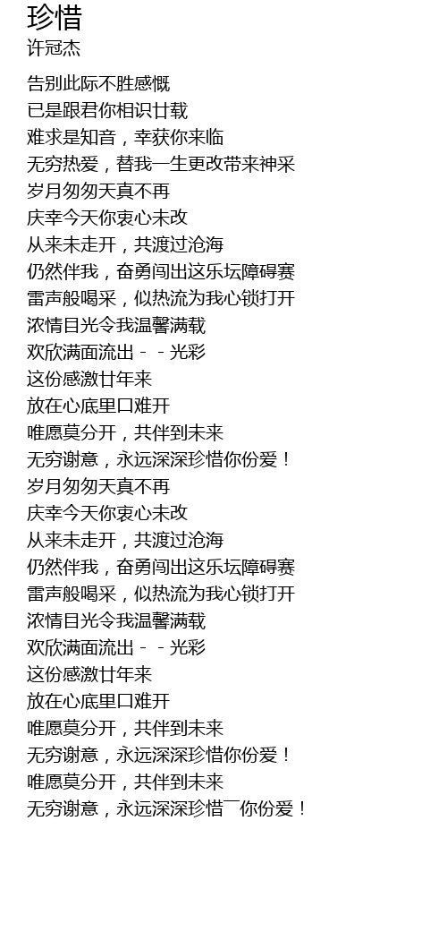 | [03:13.58] | 无穷谢意,永远深深珍惜你份爱! |