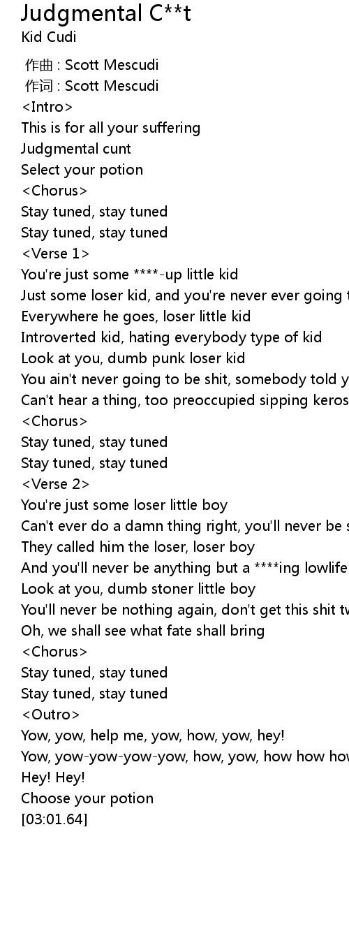 | [00:11.88] | Judgmental cunt |