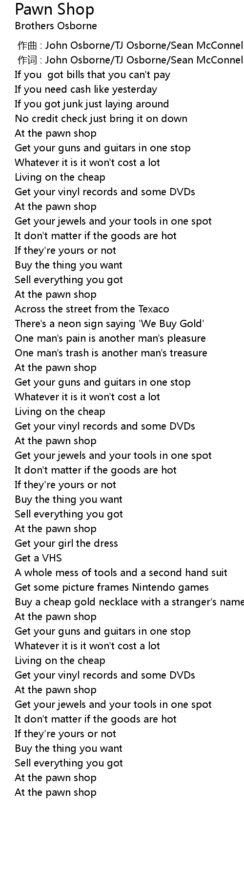 | [00:30.53] | At the pawn shop |