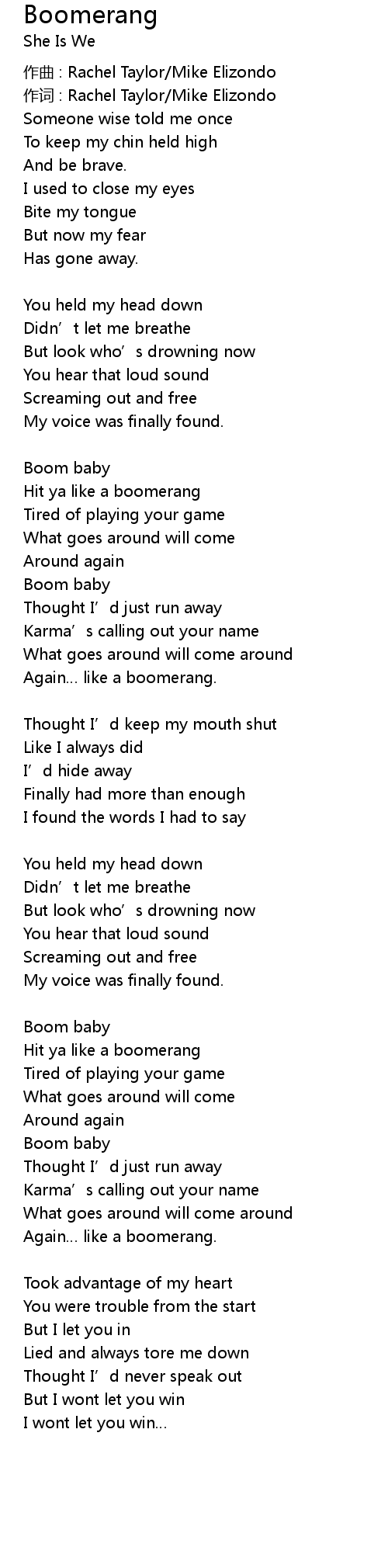 | Hit ya like a boomerang | |