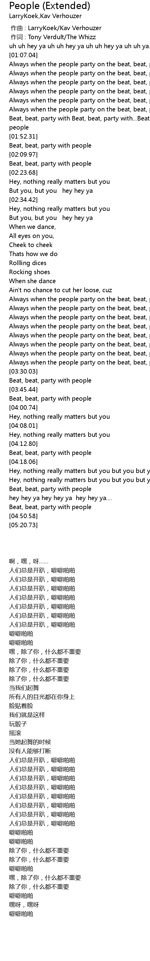 | [01:44.26] | Beat, beat, party with Beat, beat, party with...Beat beat, party with people |