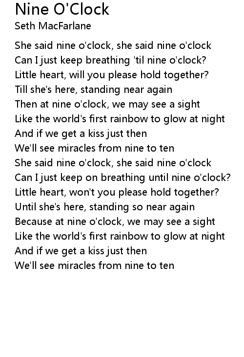 She said nine o'clock, she said nine o'clock |