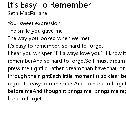 | Song | It's Easy To Remember |
