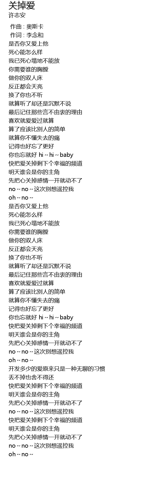 | [00:58.37] | 你也忘就好 hi~hi~baby |