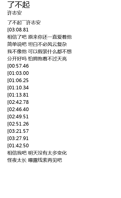 | [00:01.72] | 了不起――许志安 |