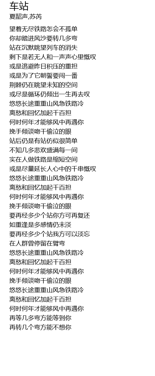 | [00:06.520] | wàng zhe wú jìn tiě lù zěn huì bù gū dān |