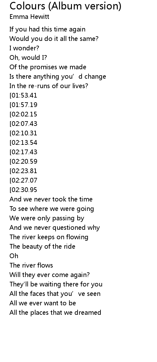 | Song | Colours (Album version) |