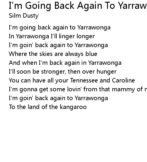 | Song | I'm Going Back Again To Yarrawonga |